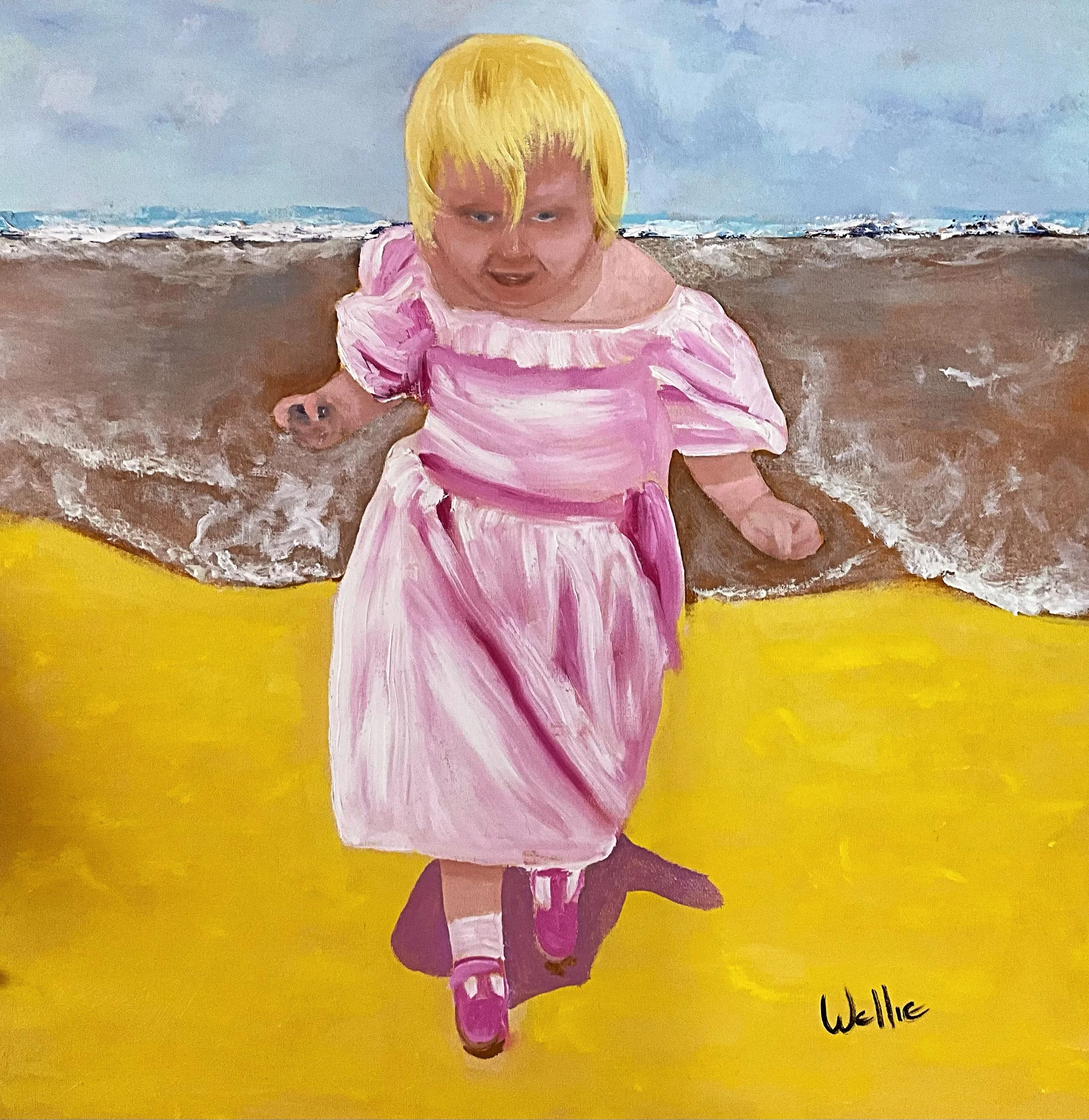 Ada at the beach, 2023, Oil on canvas, 40 x 40cm